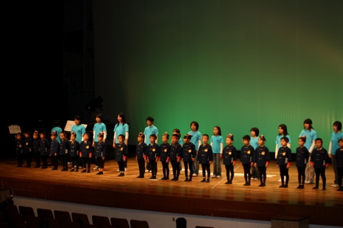 ○平成21年3月21日(土)霧島市の国分シビックセンターで開催された「第三回霧島市少年少女合唱祭」に参加した時の記念写真です。保護者の方も一緒にバスにゆられて、霧島市まで行きました。楽しい一日でした。